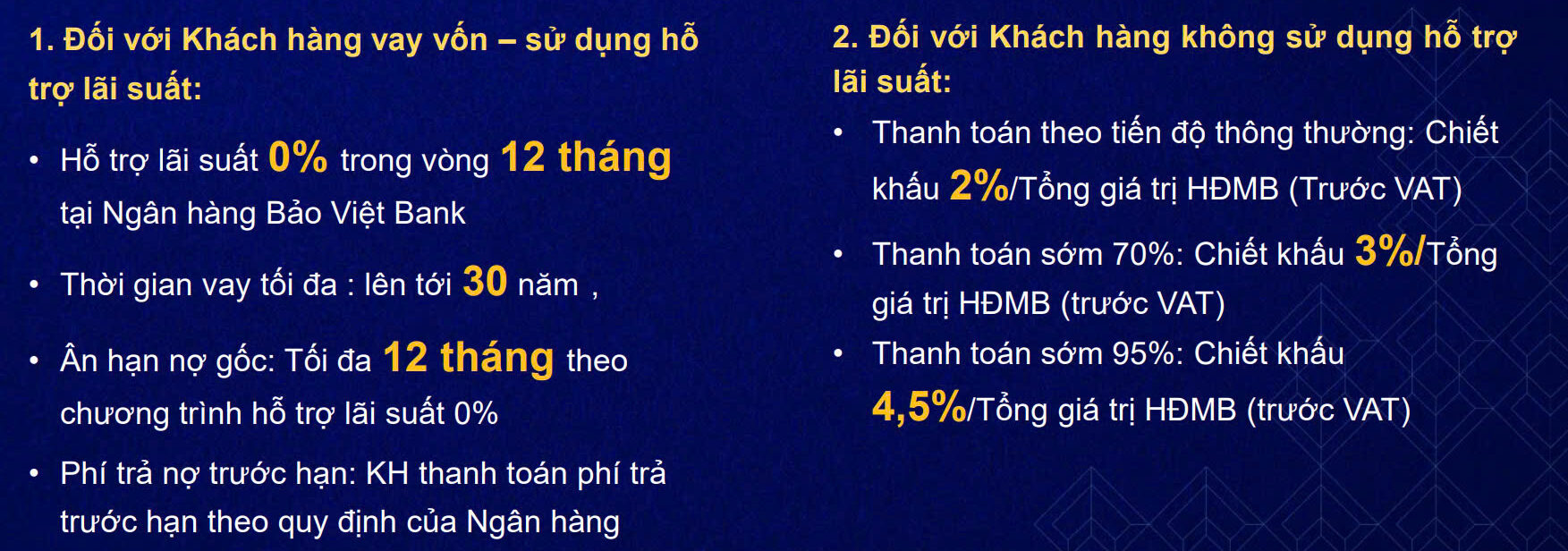 Xem đầy đủ thông tin bảng tính lãi suất vay khi mua nhà & tiến độ thanh toán ngay tại đây.